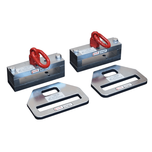 • Each set of JUNG Fork Fangs comprises of (2) 'eye-type' and (2) 'screw-type' forklift tie-down clasps.