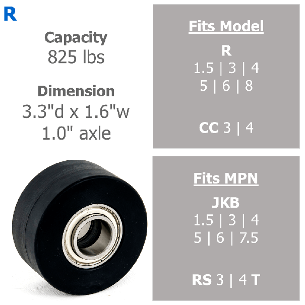 JUWAmid R Wheel (black) - Dia 3.3in Width 1.7in - Fits JUNG R2-8