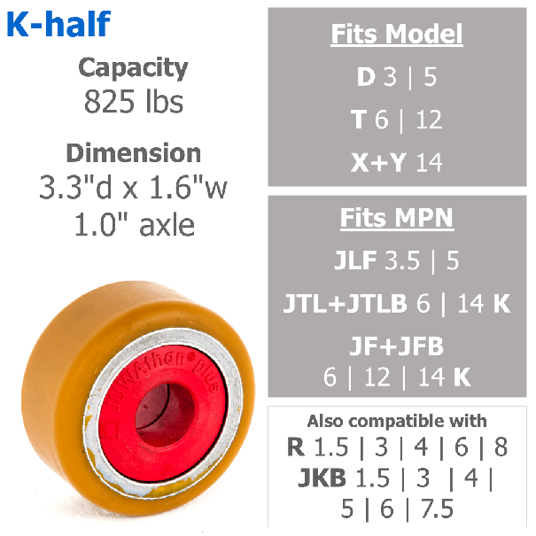 JUWAthan K Wheel (Yellow) - Half-size - Dia 3.3in Width 1.7in - Fits JUNG D3-5 and R2-8