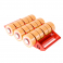 Jung machine skates with 3.5 to 5.5-inch diameter wheels are used to transport medium-sized loads up to 50 tons. The larger skates can also be used with the smaller loads to provide easier rolling but at a trade-off in height. The medium sized skates with the larger diameter wheels are capable of running on slightly uneven asphalt.
