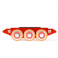 Image above: A ship, resting on a frame and supported by machine skates is ready for transport (picture left), The rear skates are supporting the frame (picture center top), The front skate is supporting the frame (picture center bottom), The machine skates are being towed by a heavy-duty forklift (Picture top right), The frame is resting on the machine skates (Picture bottom right)