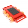 Image above: Steerable machine skate transporting concrete block is being towed (picture left), Front machine skate looking from the top-down (picture top right), Straight-line machine skate carrying rear-end of load (Picture bottom right)