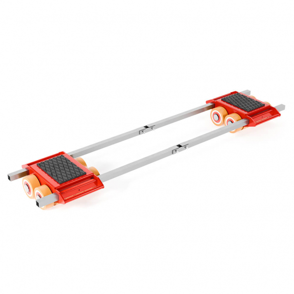 A crossbeam is used to create a center support point if necessary. This set-up is better suited than using a 4-point dolly system.